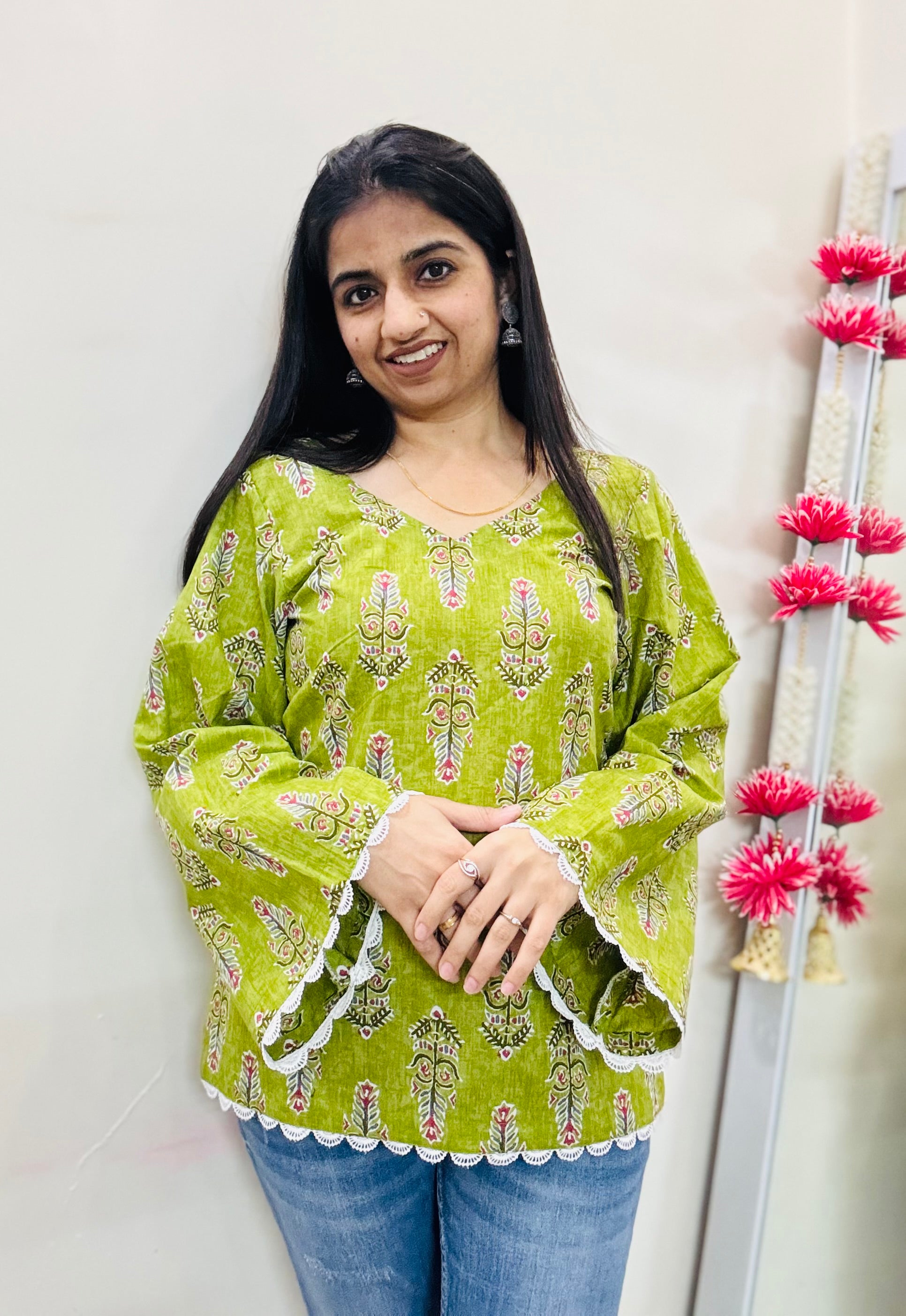 Fresh, feminine and effortlessly stylish — this green printed short kurti is designed to make everyday dressing feel special. Crafted in breathable fabric, it keeps you comfortable while giving you that perfectly polished look.