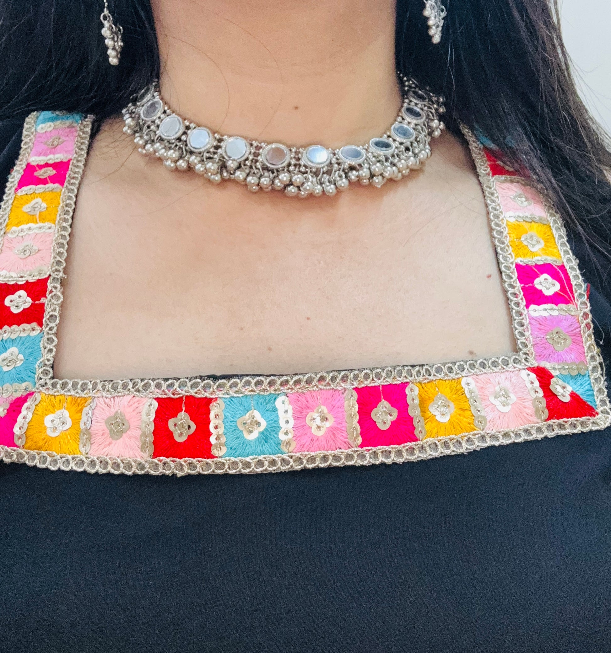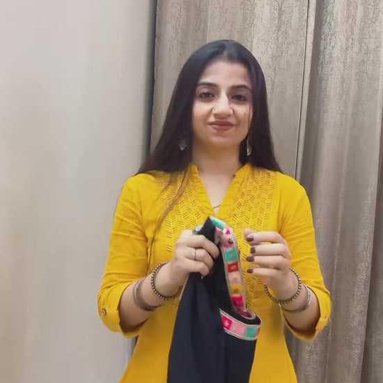 Elevate your ethnic wardrobe with this Black Premium Georgette Kurti, designed to bring effortless charm and comfort. Featuring a beautiful multicolor lace work on the neckline, this kurti blends simplicity with elegance. Crafted from premium quality georgette, it comes with a half inner attached for easy wear and a flawless drape. Perfect for festive occasions, casual gatherings, or office wear – this kurti is a timeless piece for every woman’s closet.