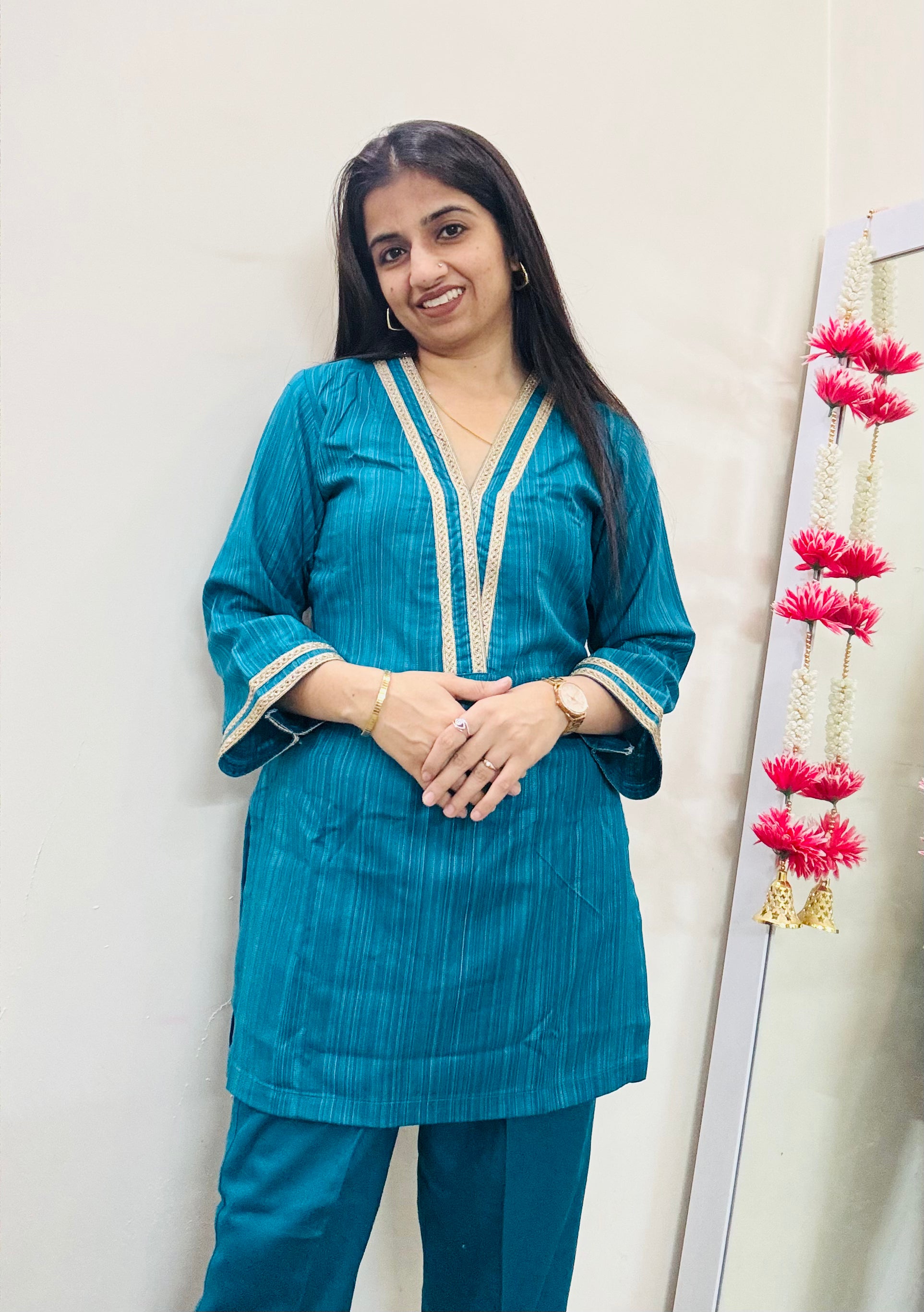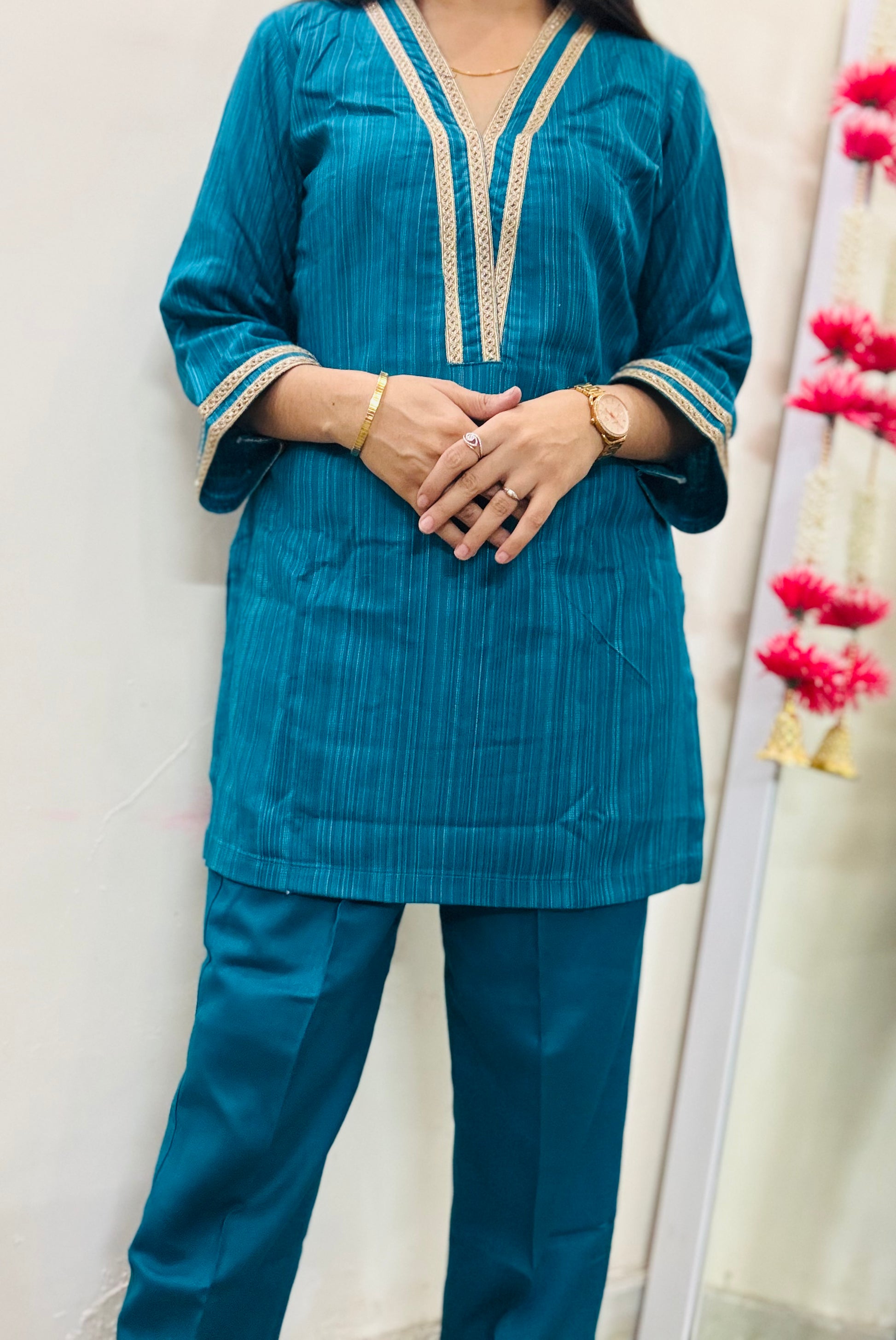 A premium winter coord set crafted in soft, warm fabric and finished with delicate lace detailing. Designed for effortless elegance, this coord brings comfort and style together — perfect for everyday wear, outings, or cozy winter evenings.